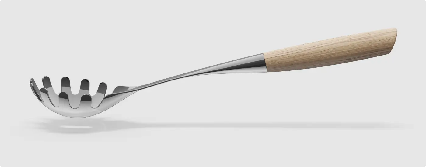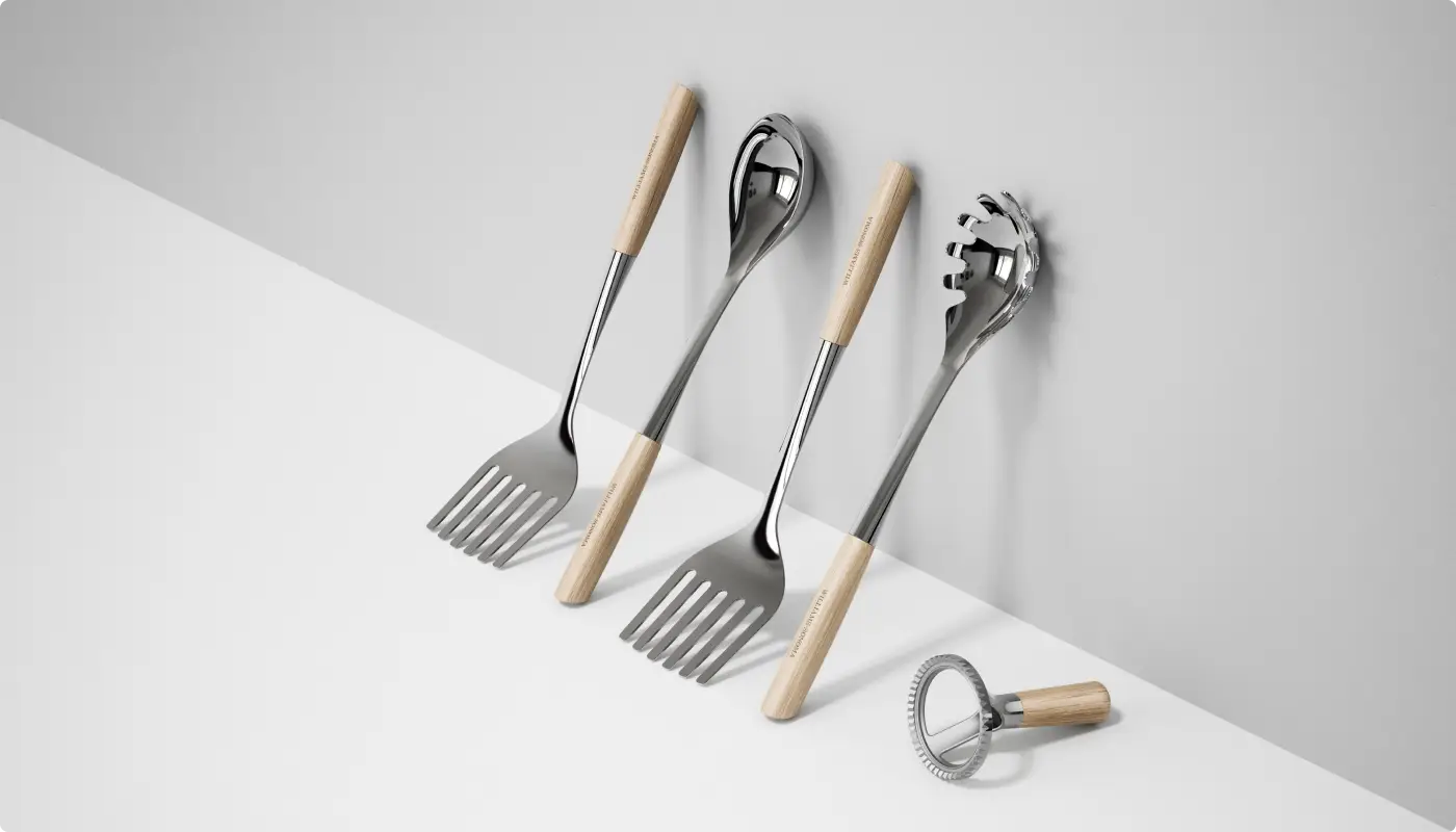 From oversized ladles to compact ravioli stamps, the design language adapts across sizes and proportions while maintaining a cohesive, unmistakably modern look that unites the range.