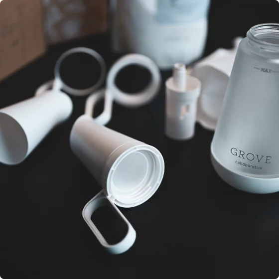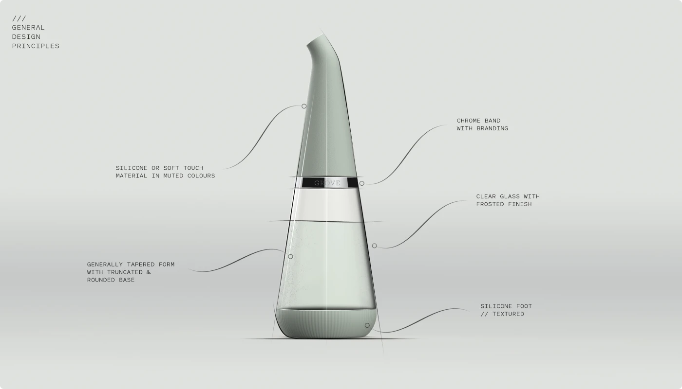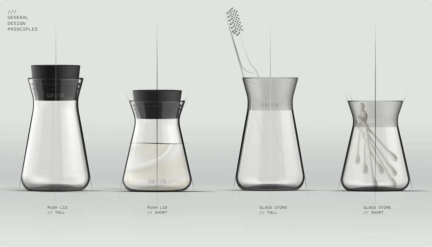 This laundry bottle was created as part of a broader brand language strategy for Grove Collaborative. Our approach centered on crafting a refined design language that incorporated premium materials and an assortment inspired by interior design, enabling consumers to adopt a more sustainable cleaning routine at home without compromising on aesthetics.