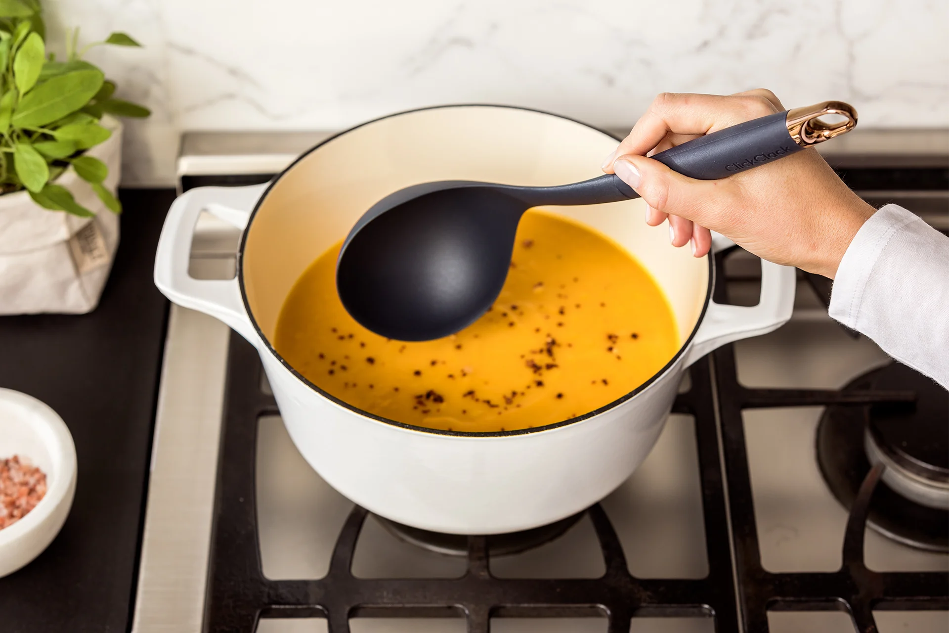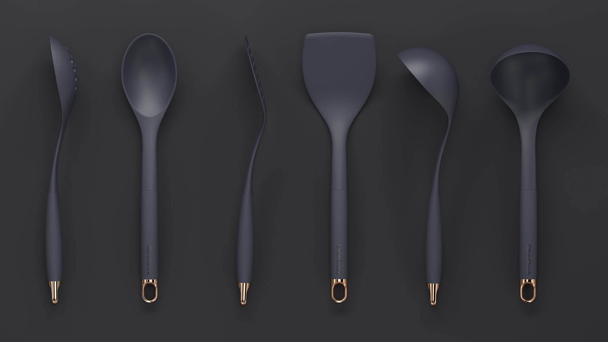 Plastic kitchen tools are often dismissed as cheap and cheerful. We saw an opportunity to rewrite that story. By combining common materials like nylon with considered surfacing and detailing, we delivered tools that look and feel far beyond their cost. The tactile matte finish contrasts with polished accents, while the decorative metal end cap adds a luxe touchpoint that catches both light and attention.